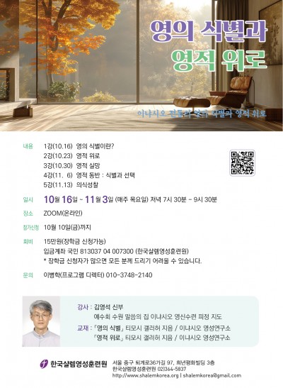 한국샬렘영성훈련원서울 중구 퇴계로36가길 97, 희년평화빌딩 3층 / 한국샬렘영성훈련원