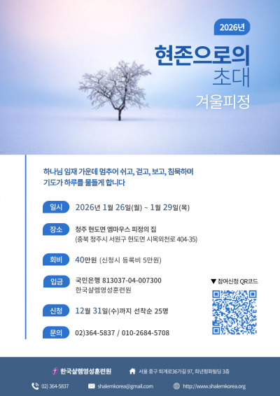 입금 : 국민은행 813037 04 007300 한국샬렘영성훈련원